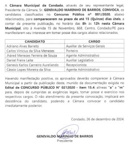 EDITAL DE CONVOCAÇÃO CONCURS0 P0BLICO N° 001/2020